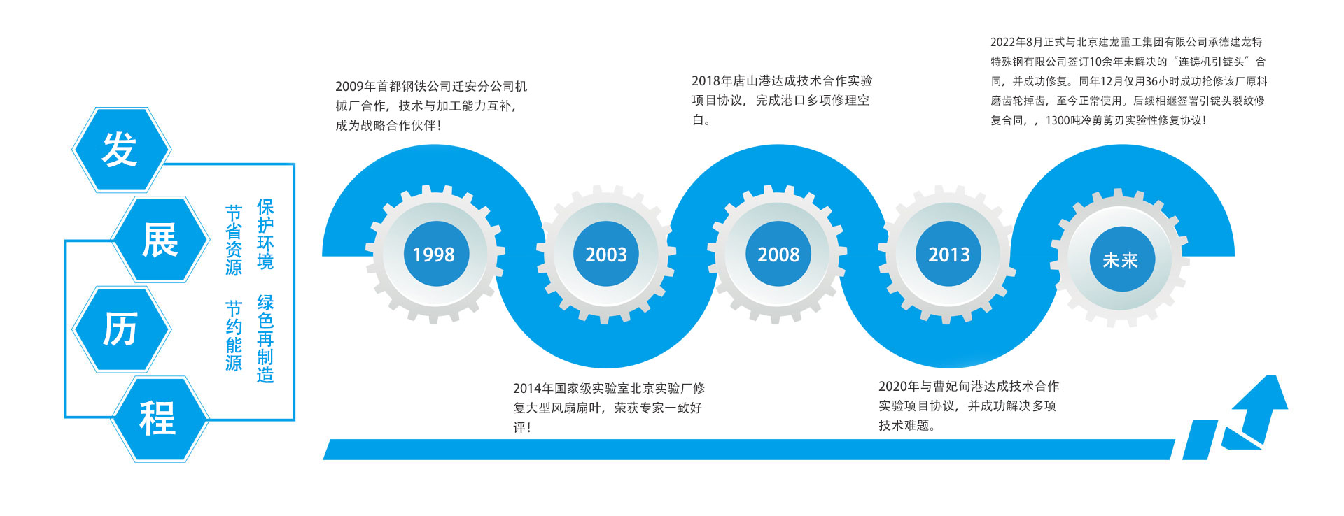 唐山燕鑫工貿有限責任公司(唐山藍燕焊接材料科技有限公司)位于唐山東45公里處,鄰京哈鐵路、205國道、京沈高速公路、坨港鐵路、遷曹高速、司曹鐵路交匯處,交通四通八達。1998-2008年,該公司與燕山大學合作,由吳浩泉、廖波、楊慶祥博士等專家小組開發研制實驗的藍燕牌免預熱免熱處理系列堆焊焊條,可用來修復齒輪、 軸類、熱軌輥、熱鍛模、冷作模具、連鑄用熱剪刃、冷剪刃等易磨損零部件以及相近鋼種。其特點是···